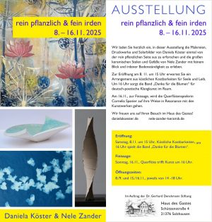 Ausstellung im Haus des Gastesrein pflanzlich & fein irden 8. – 16. 11. 2025Daniela Köster & Nele Zander